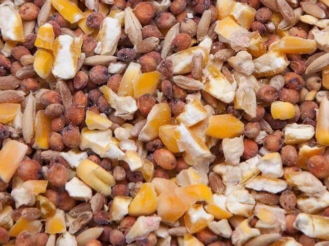 Des Moines Poultry Feed is a balanced, non-medicated feed packed with cleaned grains, protein pellets, and non-GMO cracked corn. Works for laying hands, game birds, waterfowl, and exotic birds.
